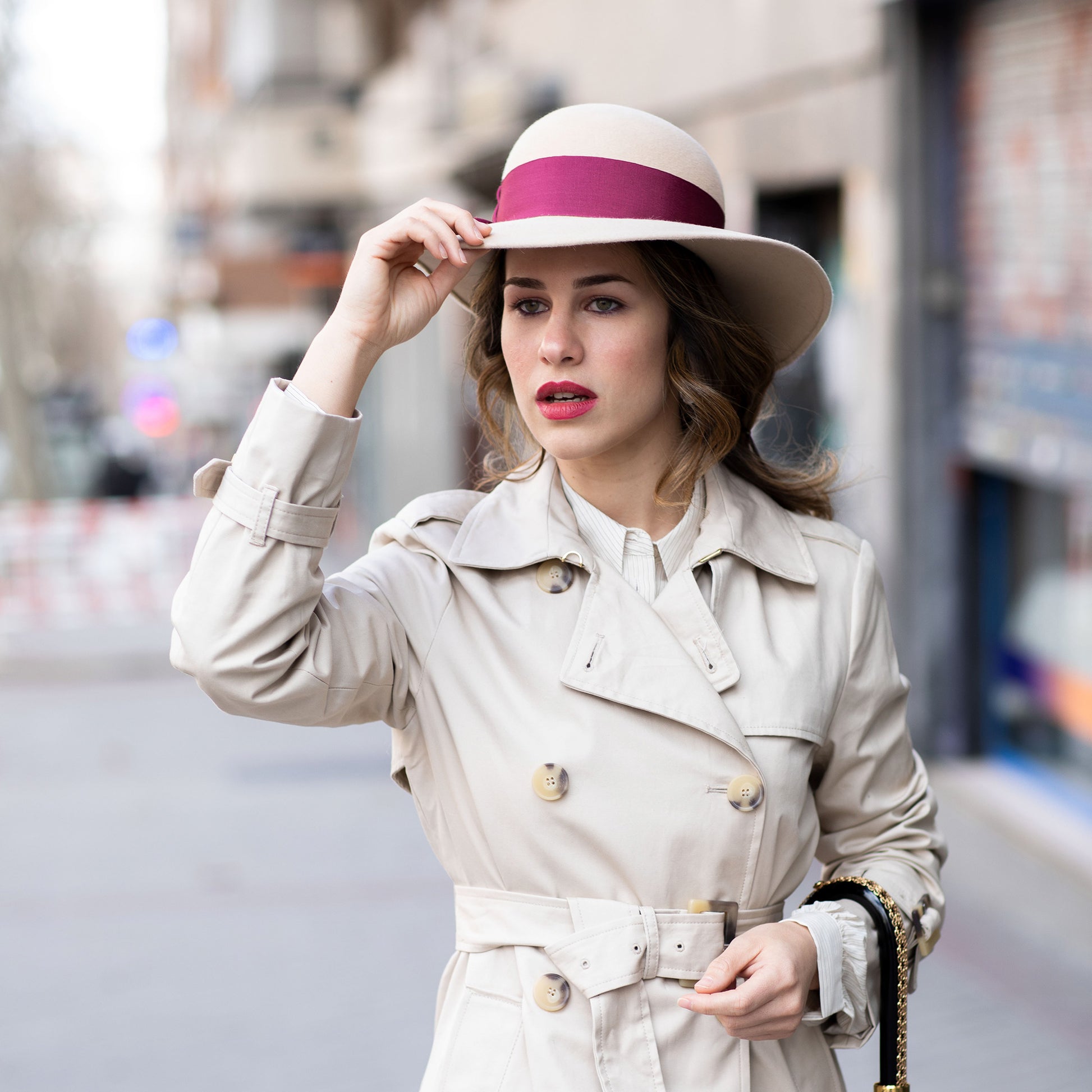 Sombrero muy femenino, inspirado en los sombreros de copa redonda de los años 50.