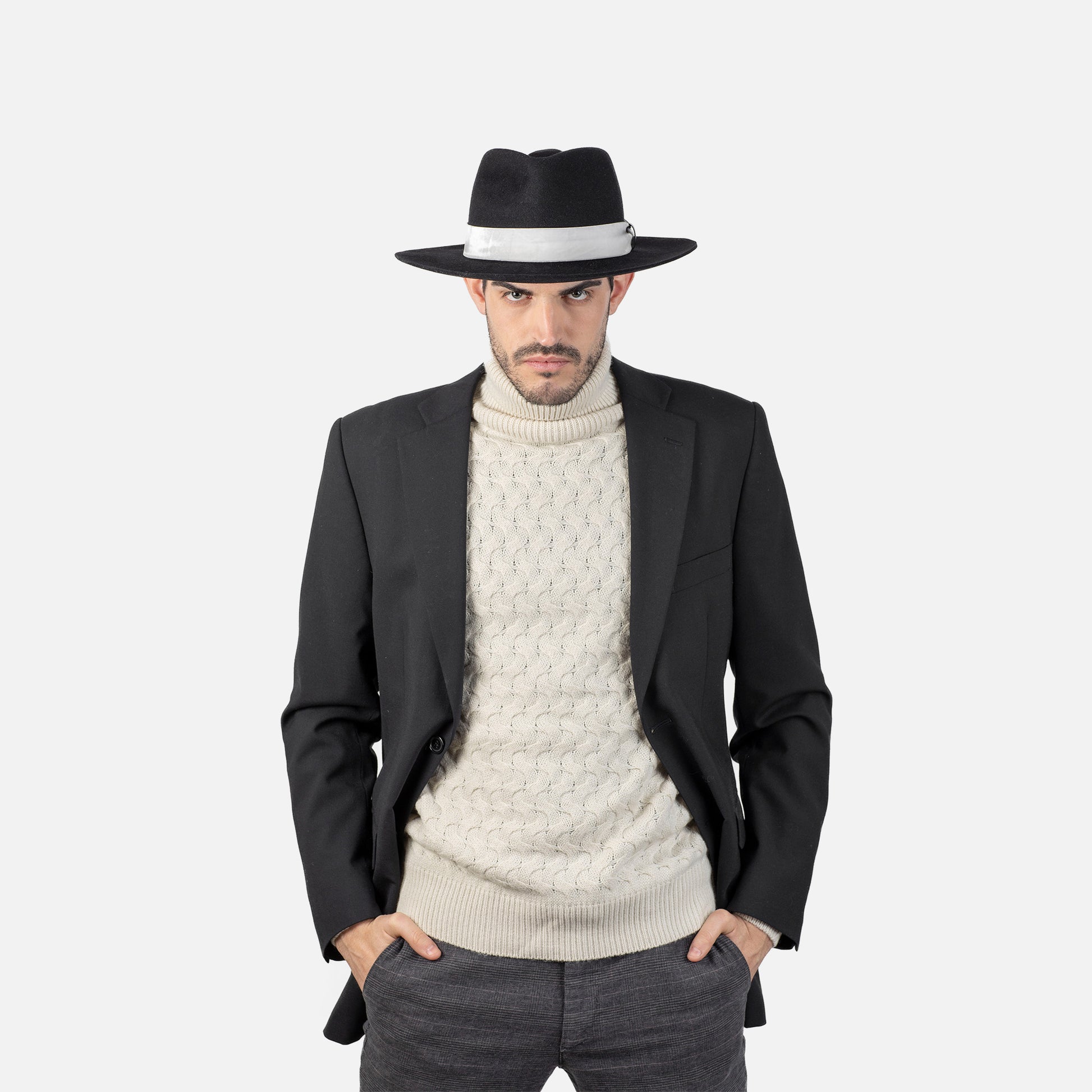 Modelo: fedora,  altura de la copa: 10 cm, ala de 6,5 cm.